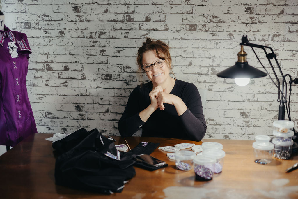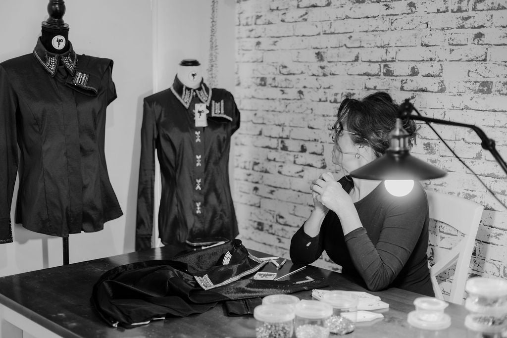 For 22 years, I served in the police force, and Western riding became my therapy, the balm that soothed the intensity of that life. When life and the impact of working in the force eventually led me to step away, I turned to rhinestoning as a calming creative outlet. What started as simple embellishments on store-bought shirts quickly turned into something more. I loved it but the quality of the shirts I was working with didn’t match the standard I held myself to.